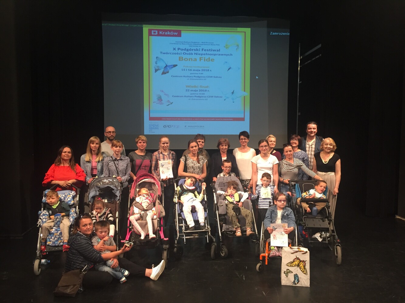 Podjęcie decyzji o przyznaniu nagród było dla jury Festiwalu dużym wyzwaniem i tak się dzieje od kilku lat. Poziom reprezentowany przez występujących artystów jest naprawdę imponujący. Tym razem jednogłośnie nagrodę MAGICZNEGO MOTYLA przyznano grupie PROMYCZKI z Ośrodka Rewalidacyjno - Edukacyjno - Wychowawczego w Myślenicach za przedstawienie "Kaczka dziwaczka". Nagrodę TĘCZOWEGO MOTYLA otrzymał zespół SIGMA ze Specjalnego Ośrodka Szkolno - Wychowawczego nr 2 w Krakowie za przedstawienie "Calineczka". Nagrodą KOLOROWEGO MOTYLA został wyróżniony za swój występ zespół taneczny ZUMBA DANCE ze Specjalnego Ośrodka Szkolno - Wychowawczego w Chrzanowie. Wśród występujących artystów wielu otrzymało także nagrody indywidualne, a wszyscy uczestnicy otrzymali wyróżnienia i dyplomy. Gratulujemy zwycięzcom i wszystkim artystom biorącym udział w naszym Festiwalu!!!