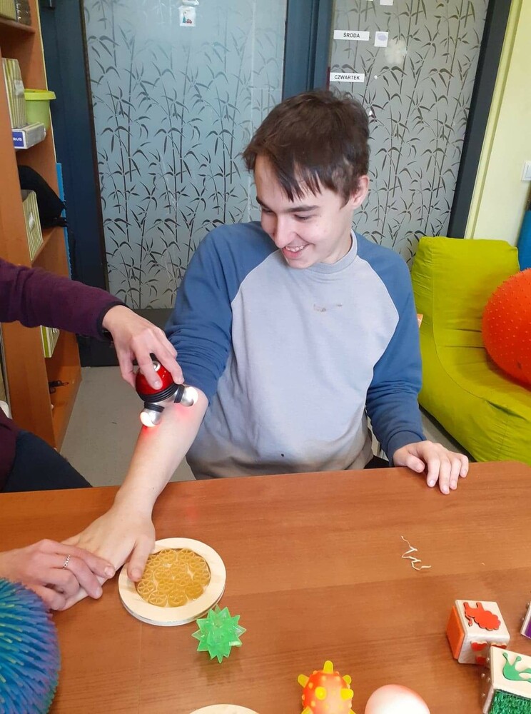 Nowością w Ośrodku są przenośne zestawy, w formie dużych walizek, do stymulacji percepcji wzrokowej, słuchowej i dotykowej.Zestaw służący do rozwijania percepcji wzrokowej wyposażony jest w różnorodne i atrakcyjne rzeczy, których jest aż 29, chyba najwięcej emocji i zachwytu wywołuje plazmowa kula Tesla. W walizce do rozwijania percepcji słuchowej również znajduje się 29 przedmiotów, wśród nich zestaw instrumentów oraz zabawki dźwiękowe. Zestaw sensoryczny oddziaływujący na zmysł dotyku zawiera 27 różnych produktów, między innymi rękawice sensoryczne, piłki do masażu, wibrująca poduszka, sensoryczne bransoletki UV, klocki sensoryczne i wiele innych zabawek dotykowych. Z wszystkich tych bogactw może korzystać każdy wychowanek, dla każdego z nich jest to niezwykła przygoda, nawet ci najstarsi świetnie się bawią! #orew#wzrok#słuch#dotyk#stymulacja#terapia#zabawa#sensoryka#smartzabawki#radość#koncentracja#odkrywanie#percepcja