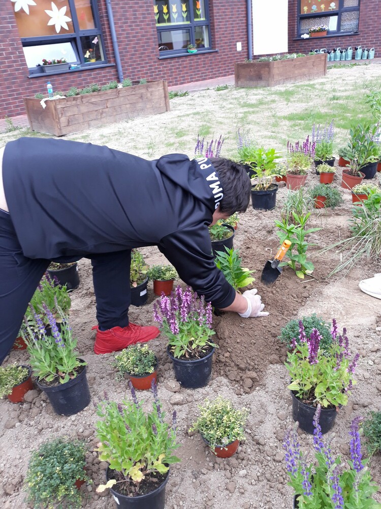 Projekt jest realizowany dzięki grantowi finansowemu z Funduszu Naturalnej Energii, organizatorem konkursu jest www.gaz-system.pl , a Partnerem Konkursu jest Fundacja Nasza Ziemia https://www.facebook.com/FunduszNaturalnejEnergii . Przed naszymi uczniami „ogrodnikami” kolejne wyzwanie – sadzenie kwiatów w uprzednio zaplanowanym miejscu. W naszym ogrodzie teraz jest pachnąco i kolorowo. Teraz tylko przydałaby się odrobina deszczu….na razie nie pozostaje nam nic innego, jak podlewanie konewką.