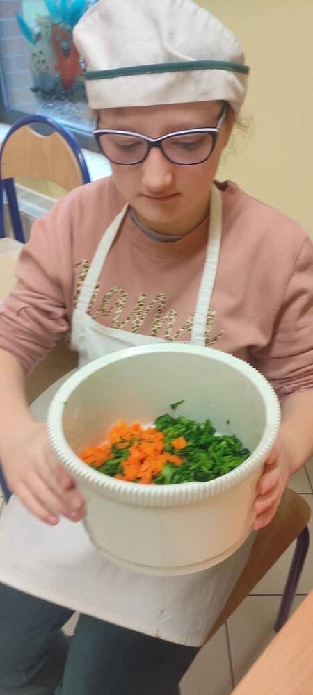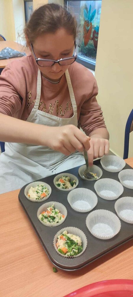 Uczniowie z II etapu edukacji realizując temat ,,Zdrowe odżywianie" piekli warzywne muffinki.
