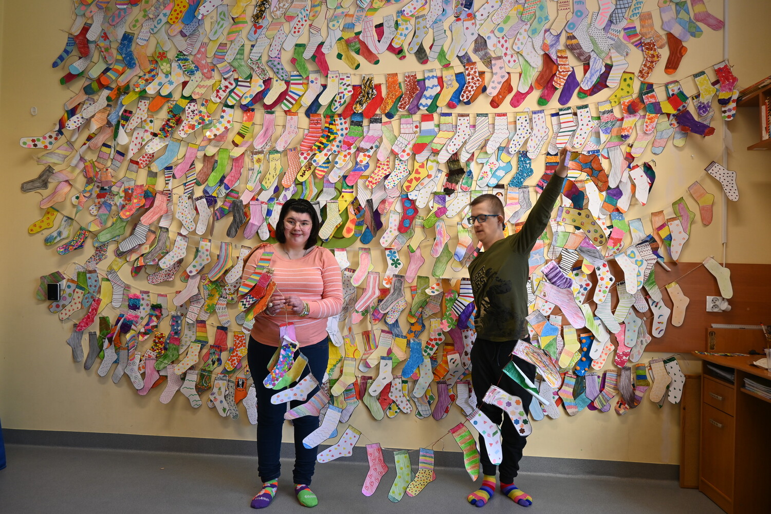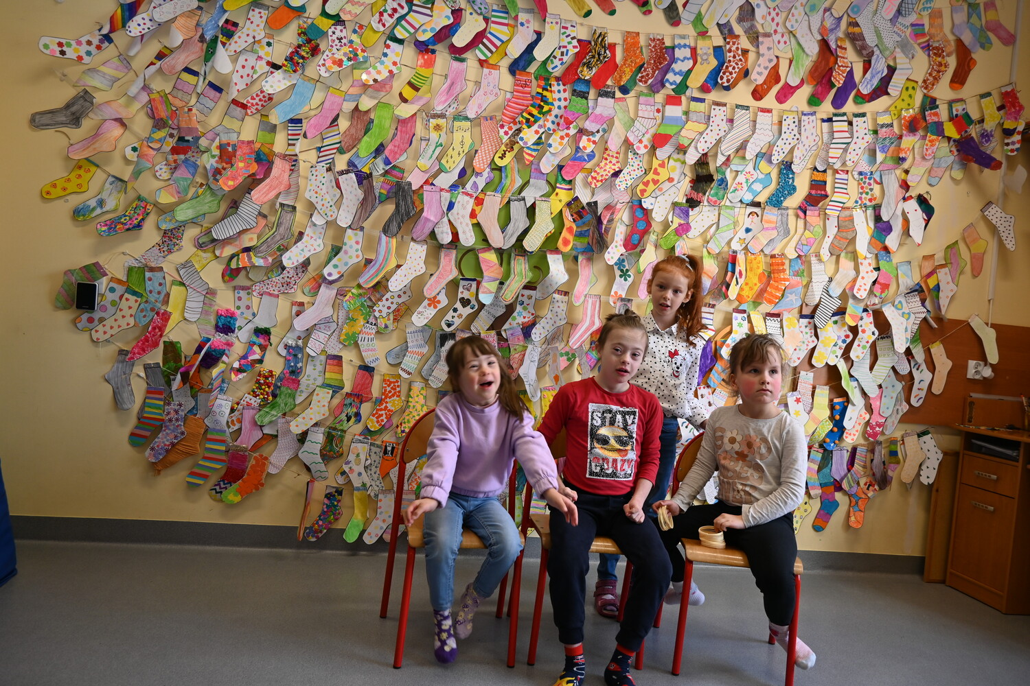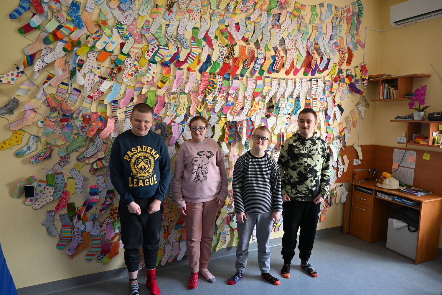 Z okazji "Światowego dnia Zespłu Downa" nasi wychowankowie wykazali się kreatywnością i wykonali 608 cudnych kolorowych skarpetek osiągając tym samym 76 metrów sznurka wyjątkowych skarpet. Jesteśmy z Wami 💖