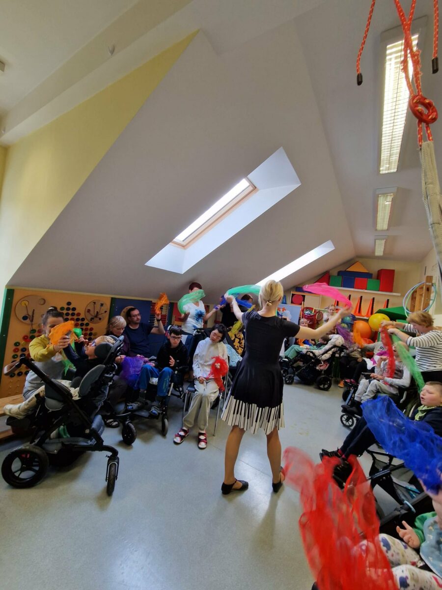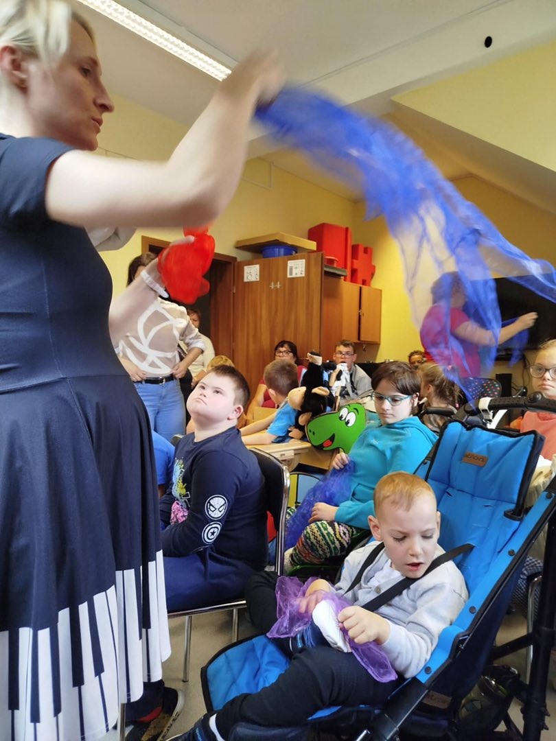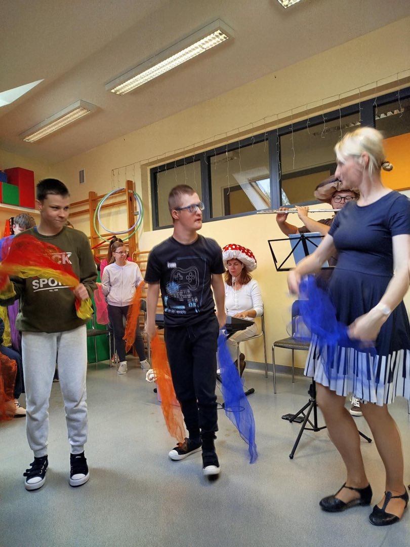 Pani Melodia 6 października 2025 Po długiej przerwie Pani Melodia znów zagościła w naszym ośrodku. Dziękujemy za wspólne muzykowanie. Wszyscy zadowoleni i chętnie uczestniczyli w proponowanych zabawach.